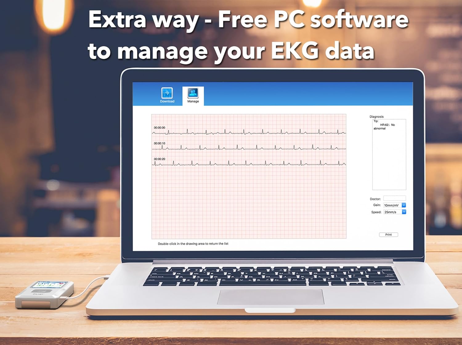 Prominent Features: The monitor is very light so that it can be much easier to use and compact size to record 30 seconds' ECG and heart rate between your hands anytime anywhere. You may keep track of your health regularly and share data with your doctor without subscription or limitation.