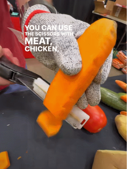 Meat cutting scissors: Cut very thick bones, fish,chicken breast. This unique kitchen gadget can replace food chopper, food scissors, vegetable slicer, fruit cutter and other kitchen equipment.