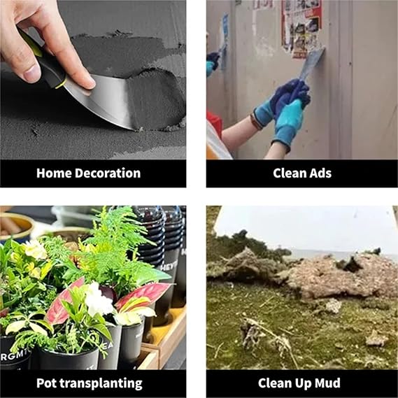 High Quality Material: The knife scrapers are made of high quality stainless steel, this spatula is built to last. Its extra thick design is sturdy and durable, allowing you to tackle tough cleaning and scraping tasks with ease. Whether you need to remove stubborn debris or level cement surfaces, this tool is up to the challenge.