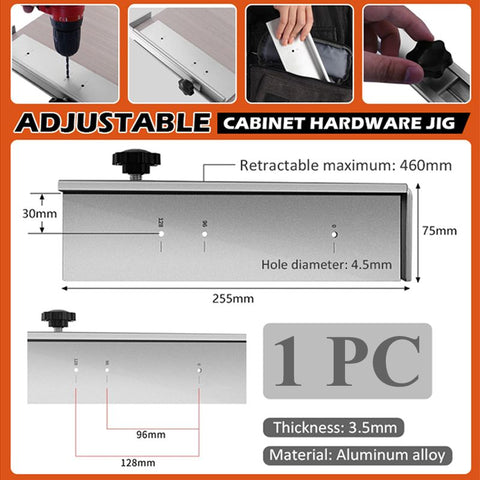 Package Includes: 1 *  Adjustable Cabinet Hardware Jig Drilling Positioner