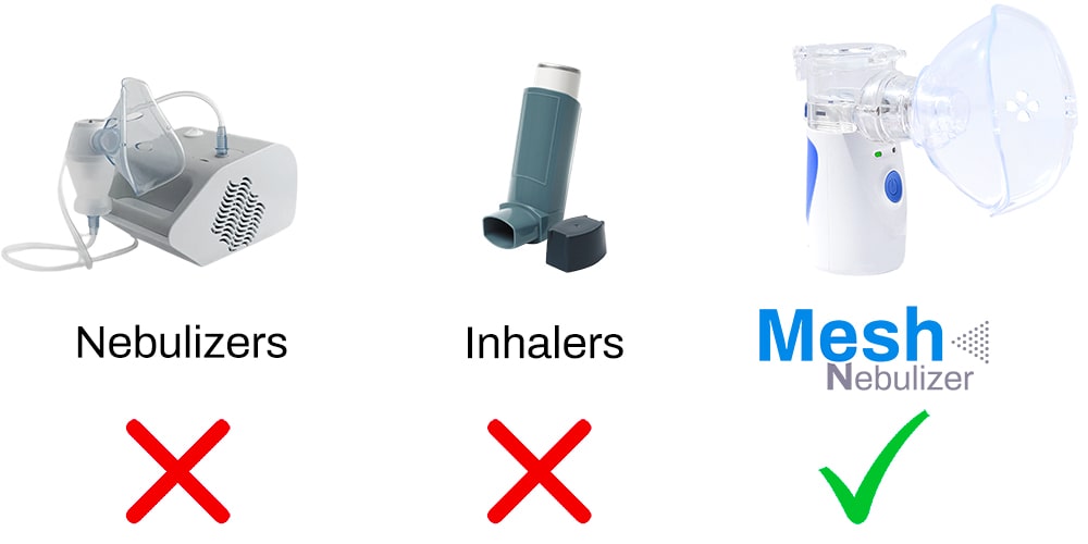 COPD and Asthma: Can be used with any medication that can be delivered in a regular nebulizer, including Albuterol and Budesonide. Our nebulizer is a great alternative to expensive inhalers and old-fashioned bulky nebulizers. Common cold and allergies: They can also be taken without medication. You can create an ultrasonic mist with water or saline to clear the airways.