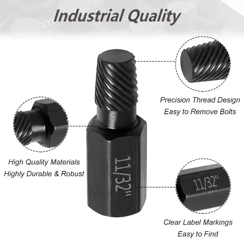 Superior Industrial Quality: Crafted from heat-treated and premium Chrome Vanadium Steel, these extractors are highly resistant to wear, corrosion, and deformation. Each tool undergoes precision machining and exhibits exceptional hardness for prolonged durability.