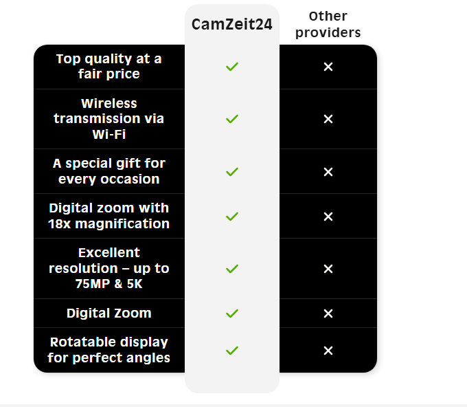 Capture 75 MP photos and 5K videos with the CamZeit24™. With 18x zoom, a rotating 3" display, and Wi-Fi connectivity, you can easily capture and share every moment. With its nostalgic design and modern technology, every shot looks like a professional!