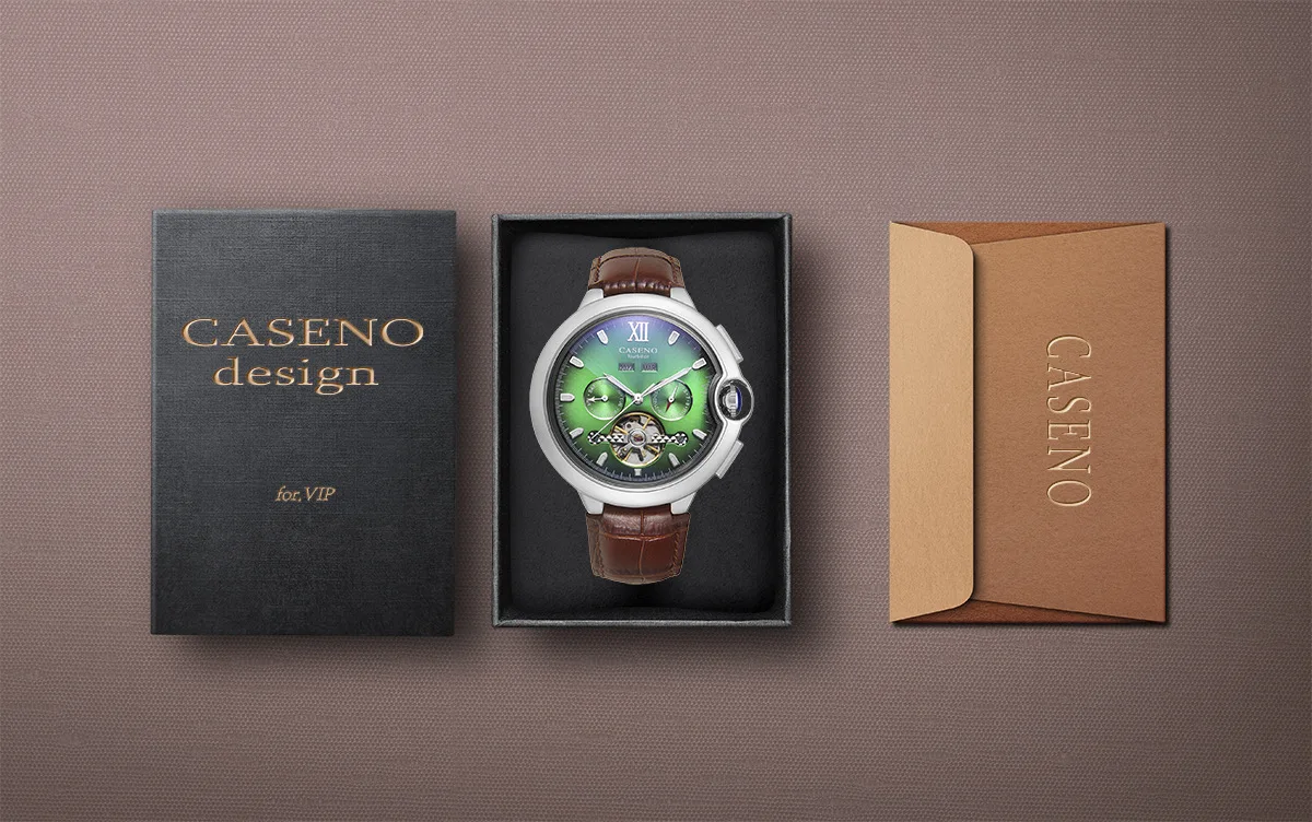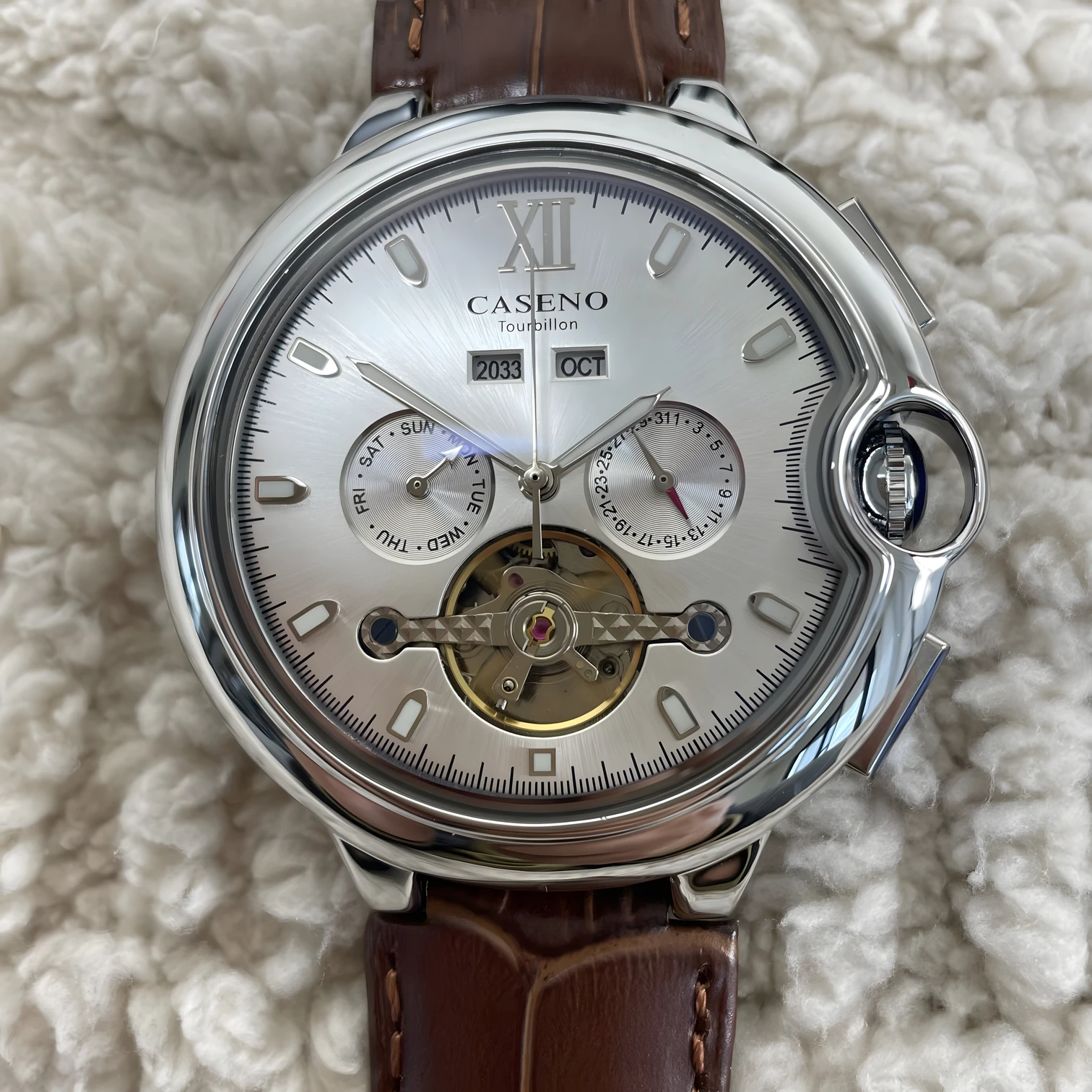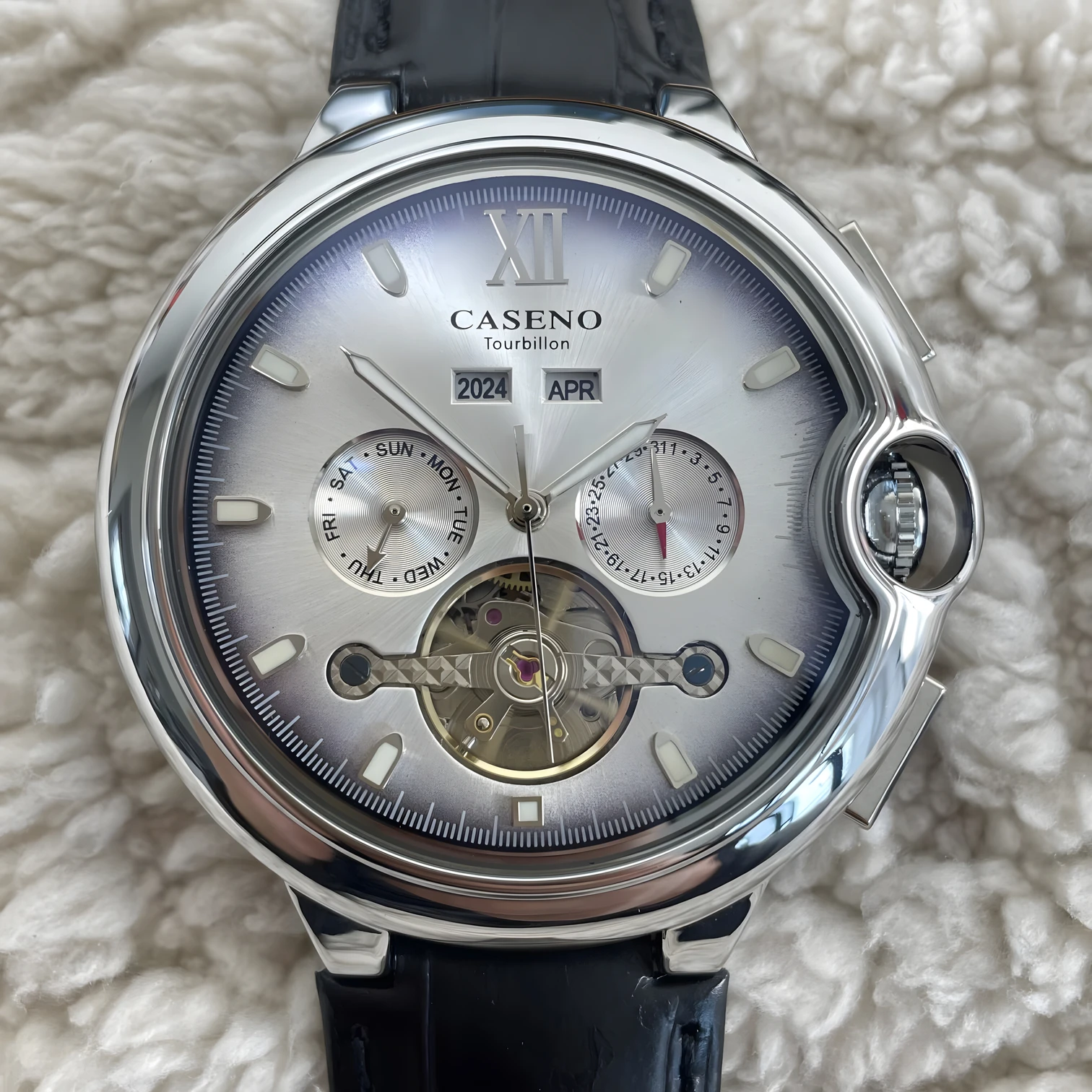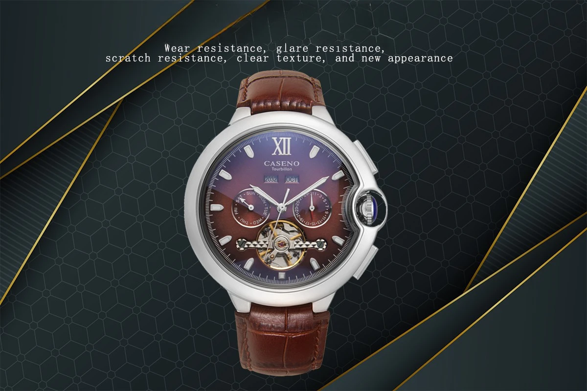 CASENO Tourbillon Automatic Mechanical Watch Blue Light Crystal Waterproof Men's Watch Multi-Function Watch