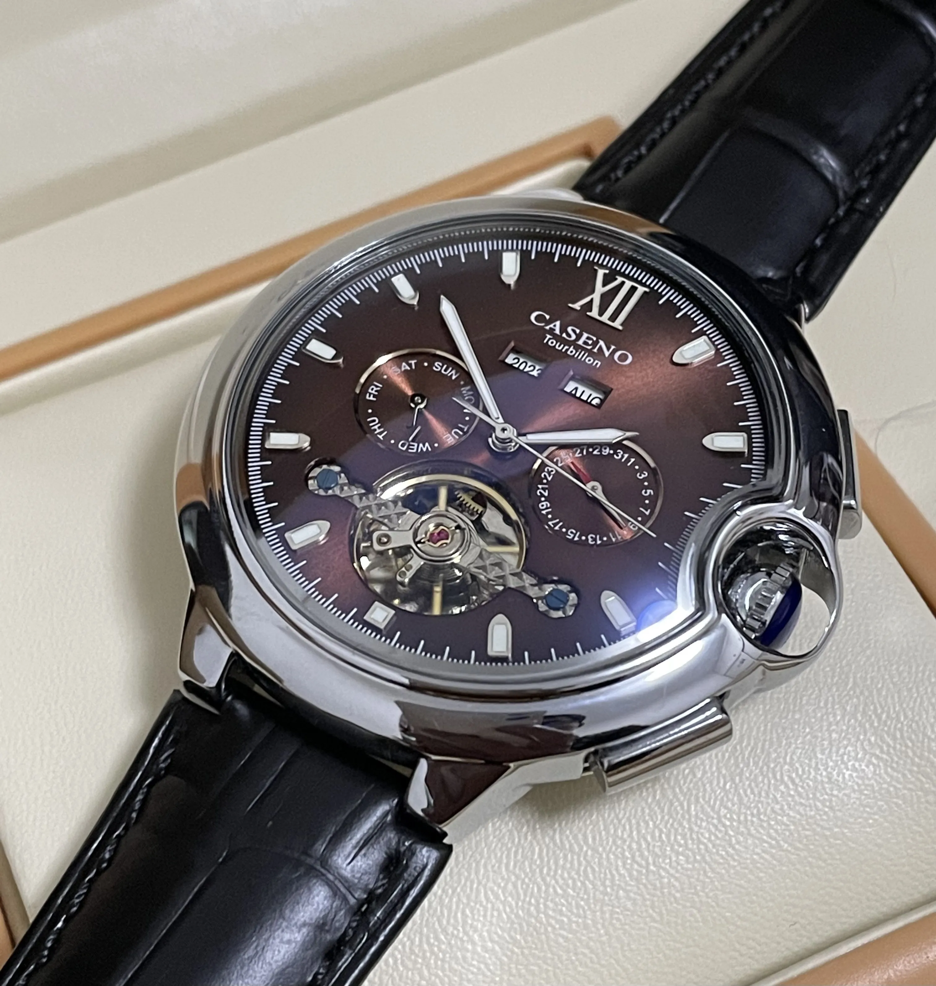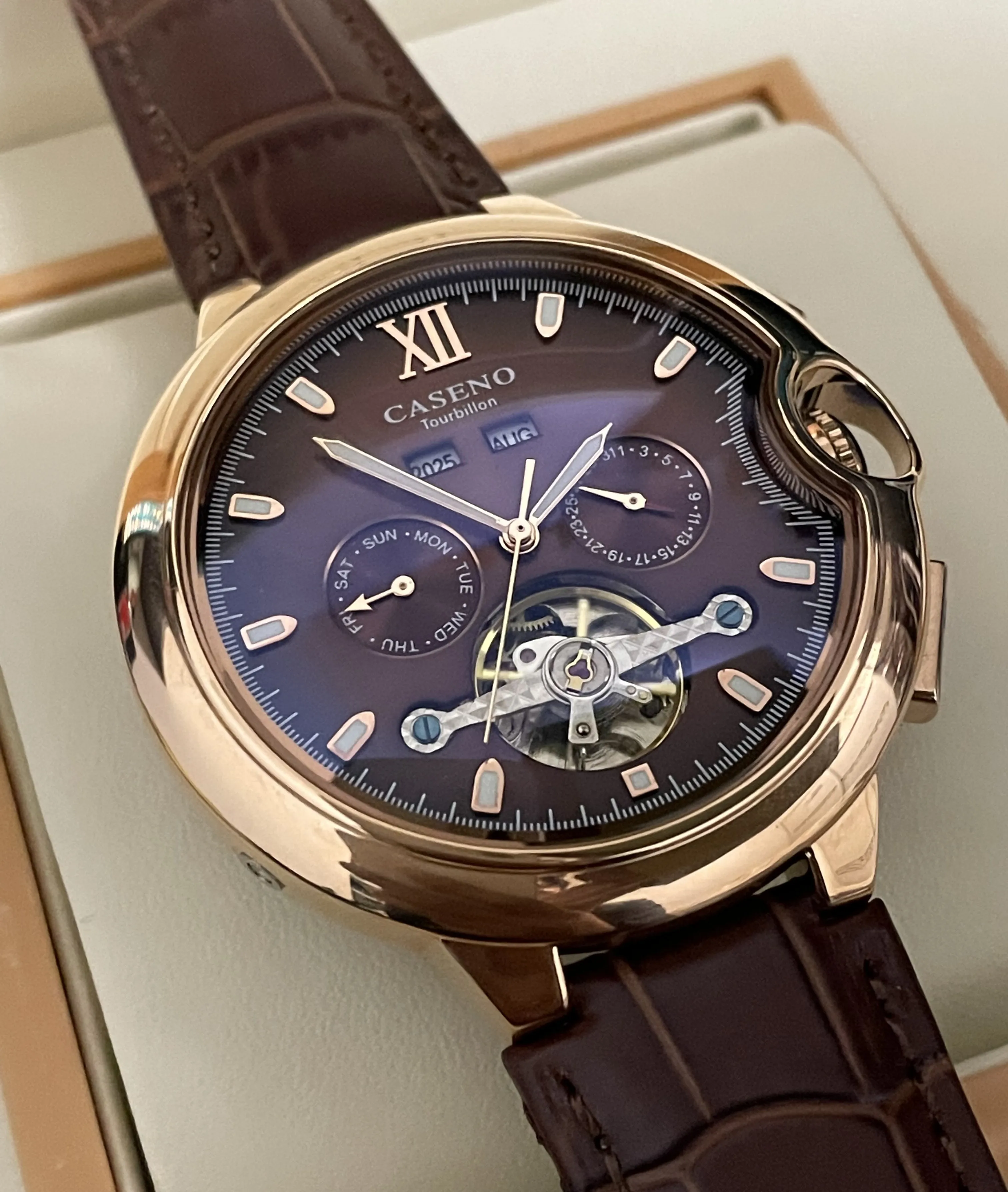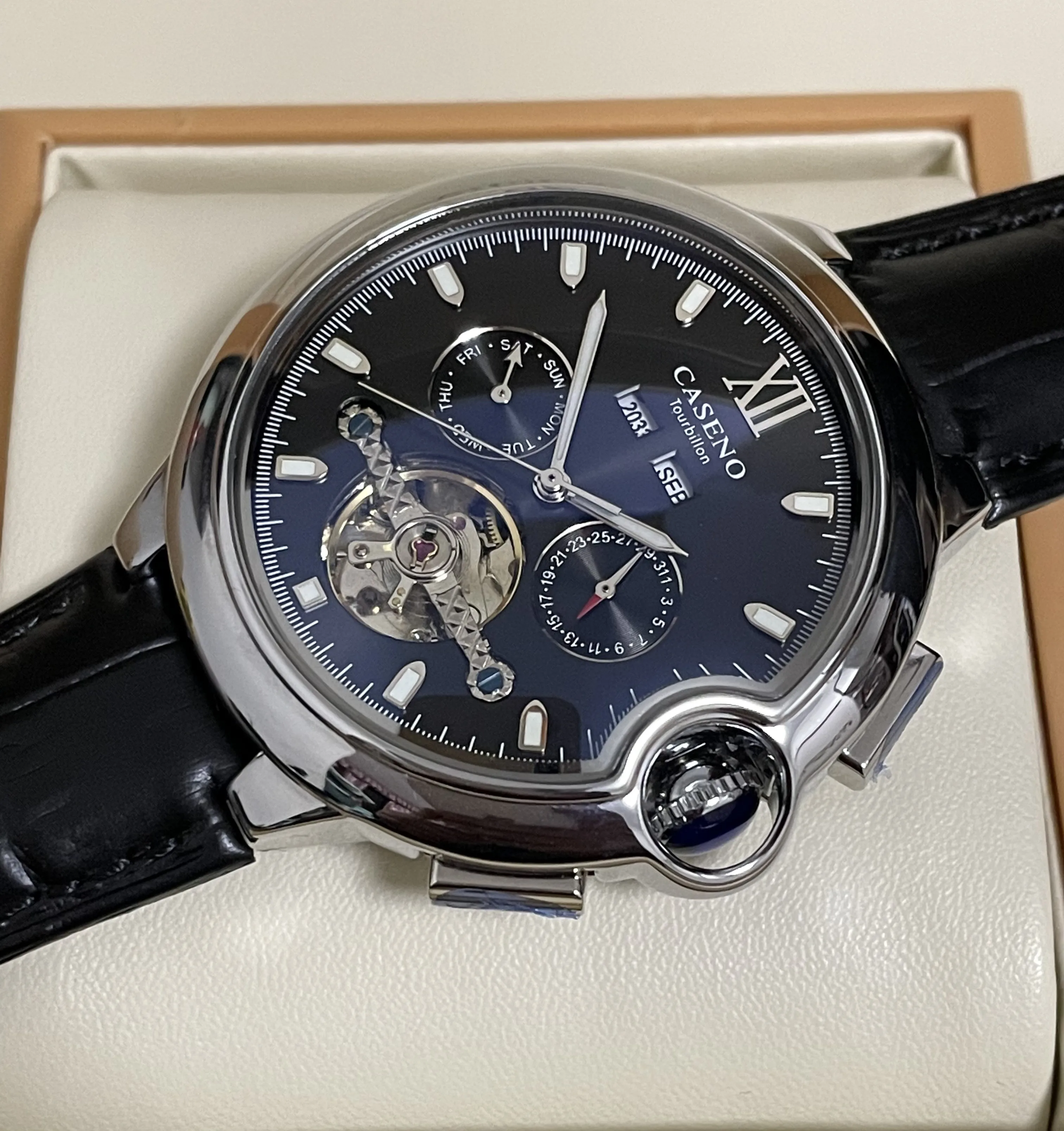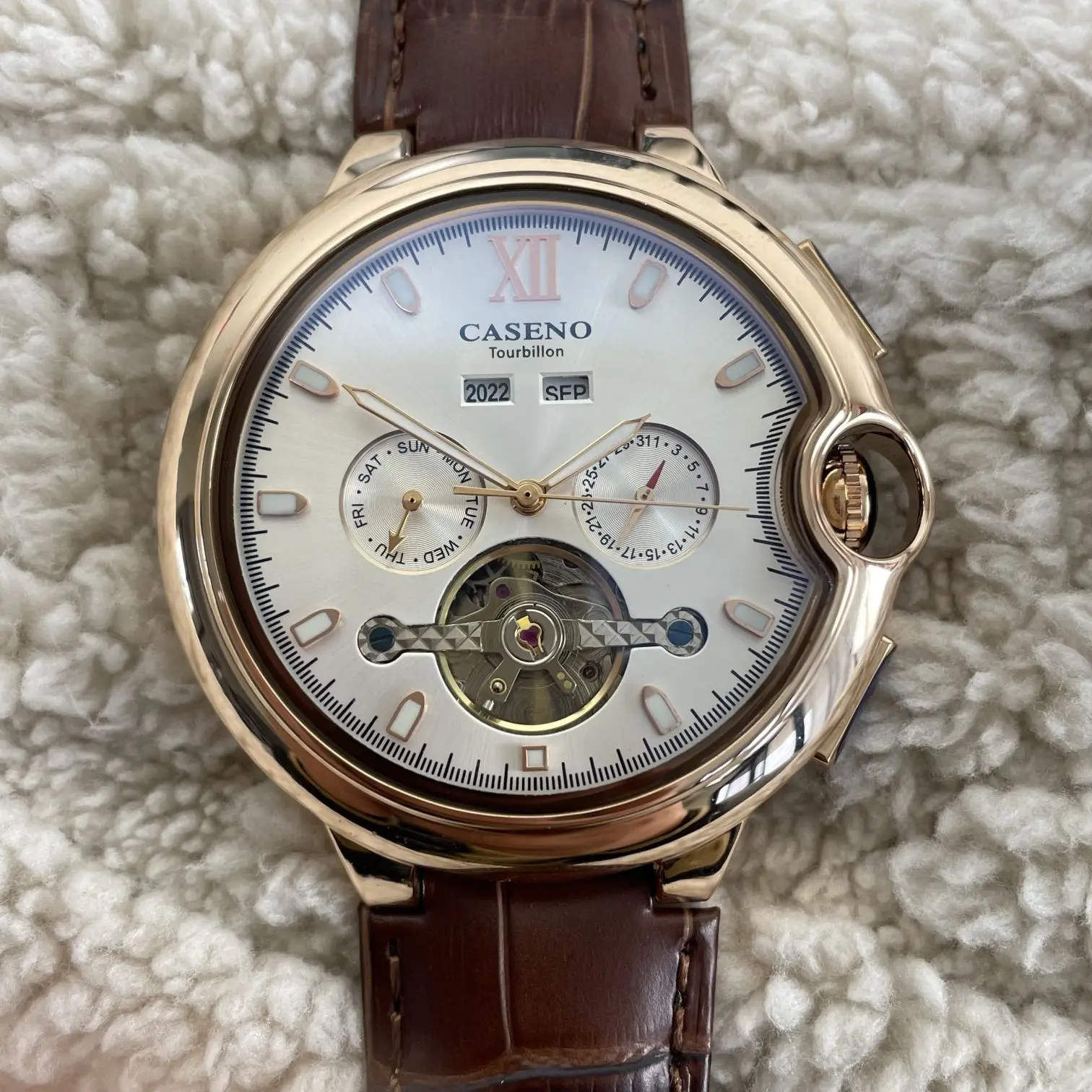 CASENO Tourbillon Automatic Mechanical Watch Blue Light Crystal Waterproof Men's Watch Multi-Function Watch