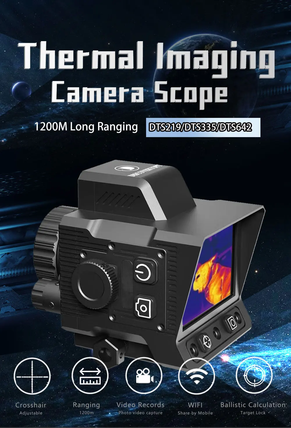 Crosshair Reticle Tiny Thermal Imaging Camera for Hunting Search Bird Detection with 1200m Distance Measurer Real Time Ranging