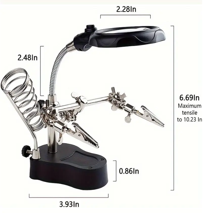 Easy to adjust the angle: Ergonomic, easy to position, and adjustable, equipped with a metal hose, this magnifier can be bent freely to get the correct position of the lens for comfortable viewing, you can place the light where your eyes need to see. Strong stability of the base plate; A useful auxiliary tool in the field of welding and modeling, your hands are free to focus on details.