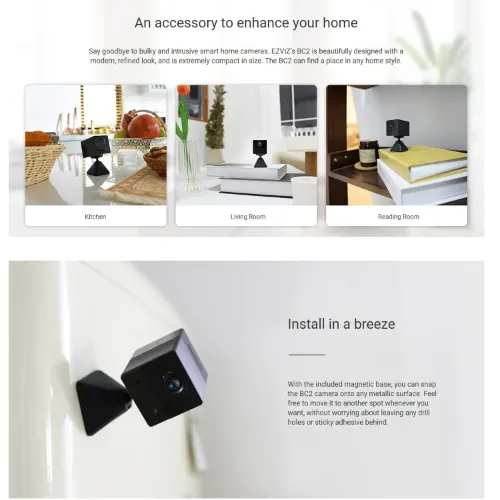 Say goodbye to bulky and intrusive smart home cameras. EZVIZ’s BC2 is beautifully designed with a modern, refined look, and is extremely compact in size. The BC2 can find a place in any home style.