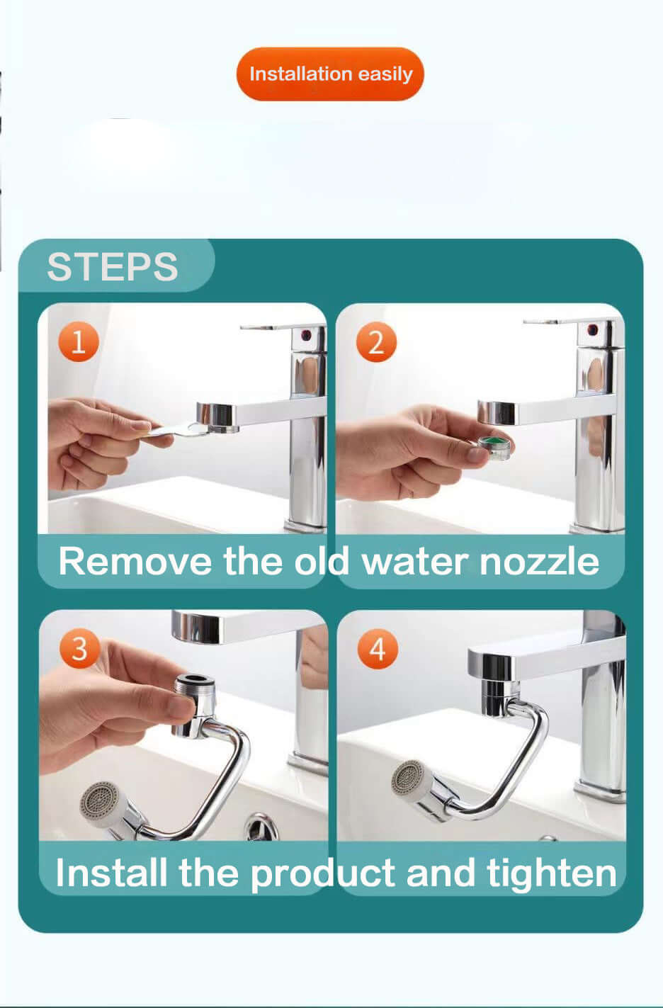 The multifunctional faucet can be set to two different water flow modes: gentle bubble flow and powerful rinse spray. Simply rotate the nozzle section to switch the water flow mode, gentle bubble water flow for face wash and mouth rinse. Power shower mode with fine water flow to quickly and fully clean vegetables, fruits and sink surfaces.