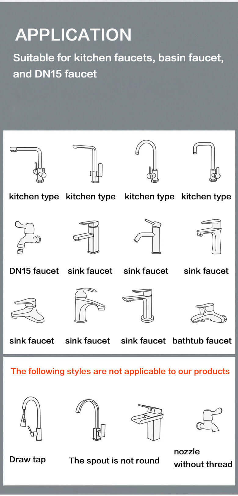 The faucet aerator can be installed directly on faucets with 22/24mm internal/external thread with accessories and tools. Direct manual installation without tools, done in seconds.