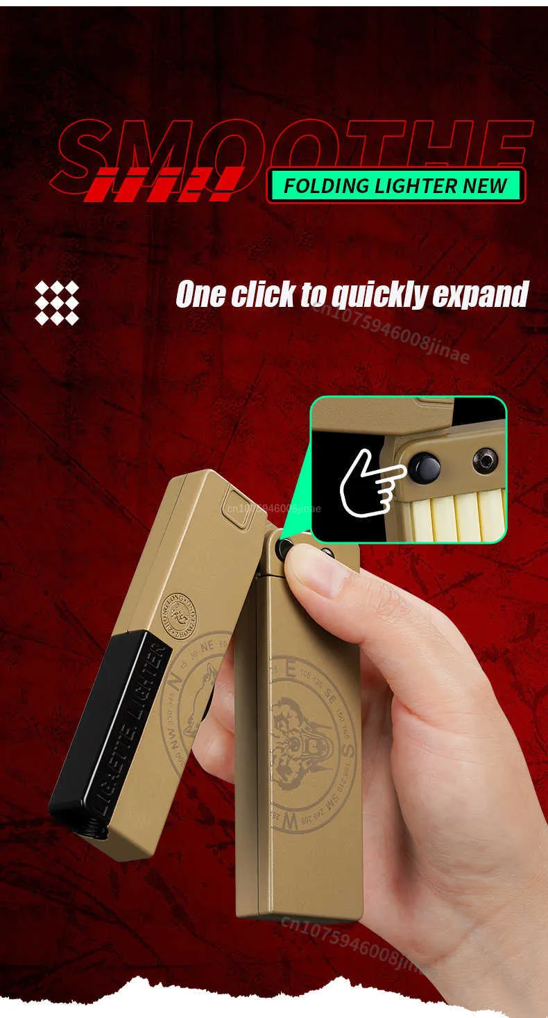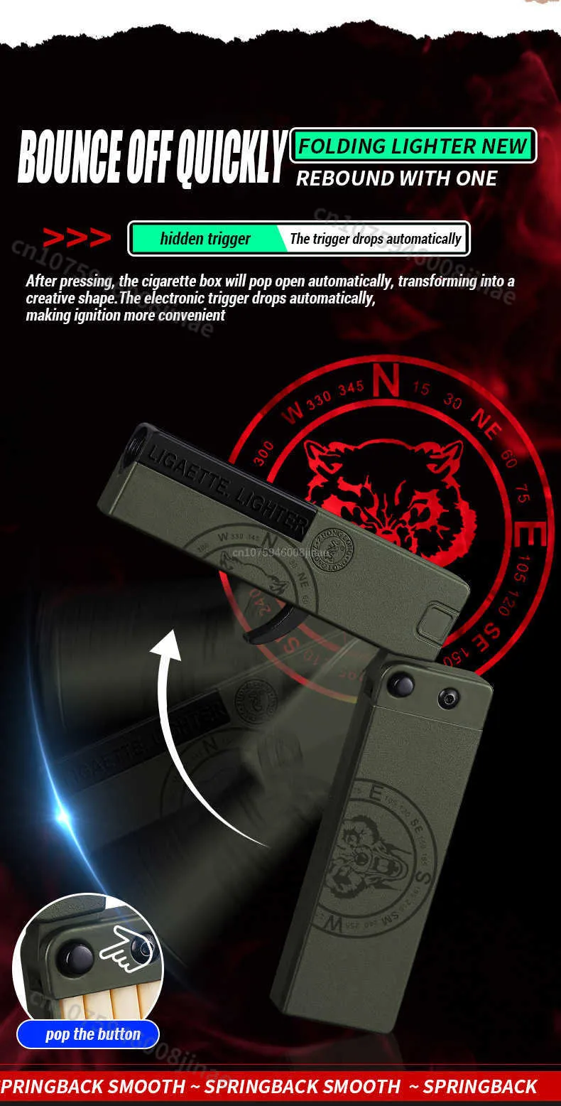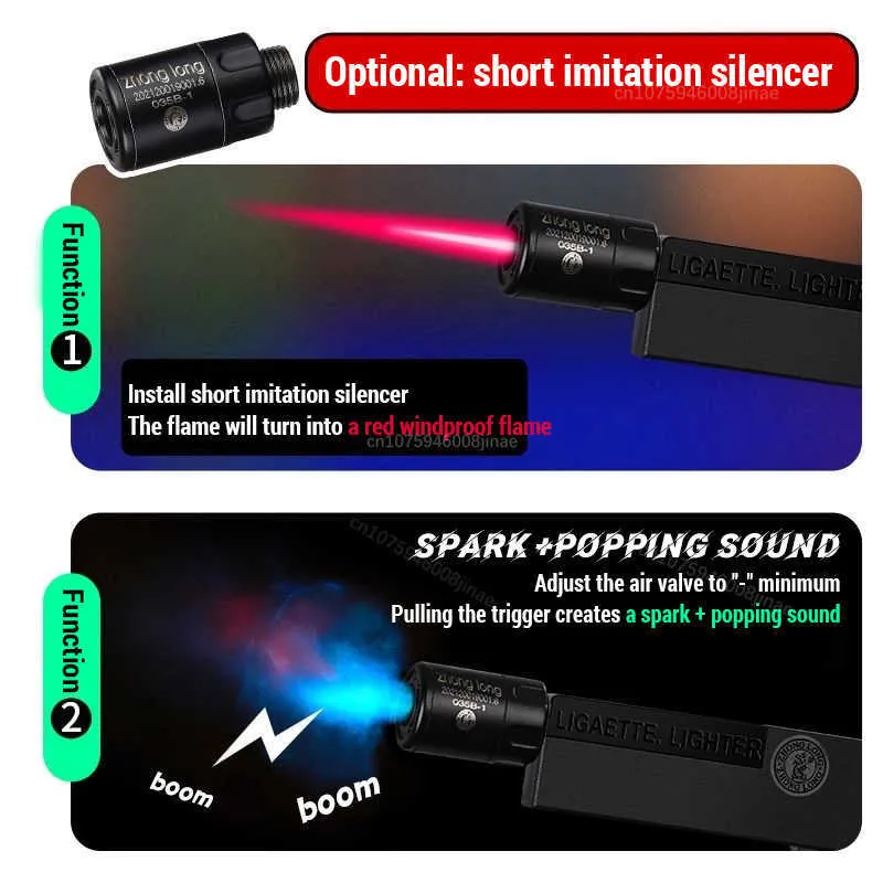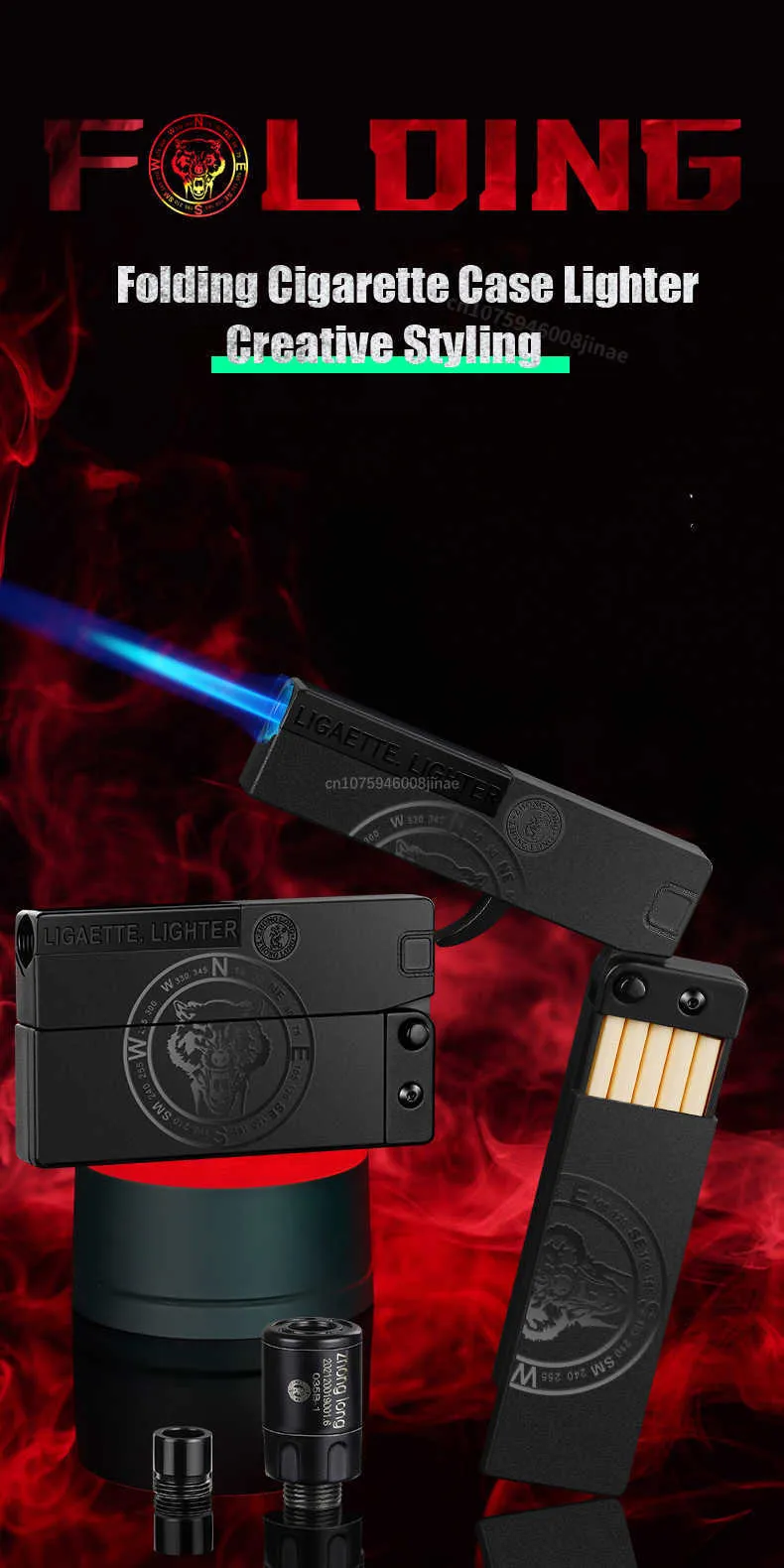Folding lighter with spray effect and storage box, 2 metal silencers