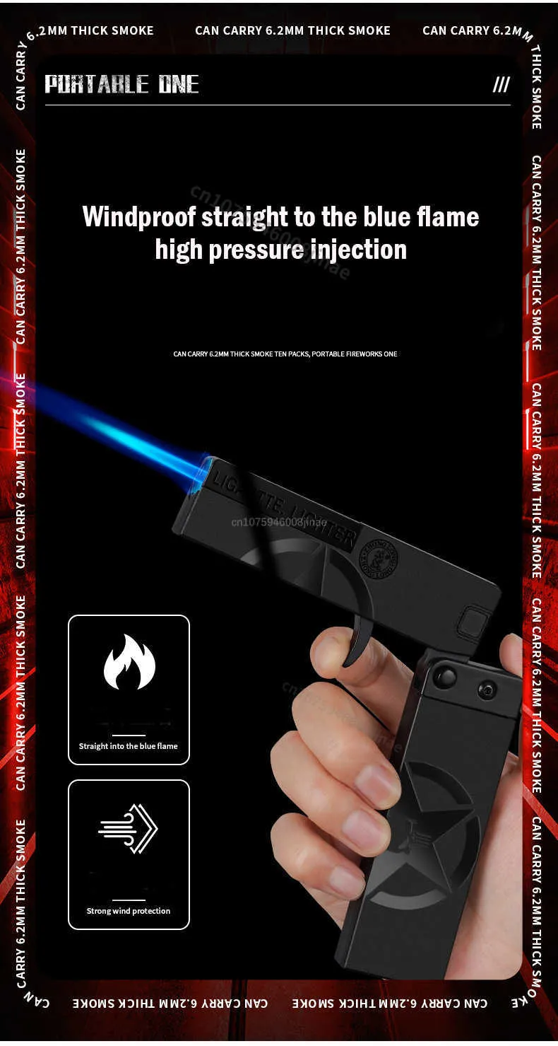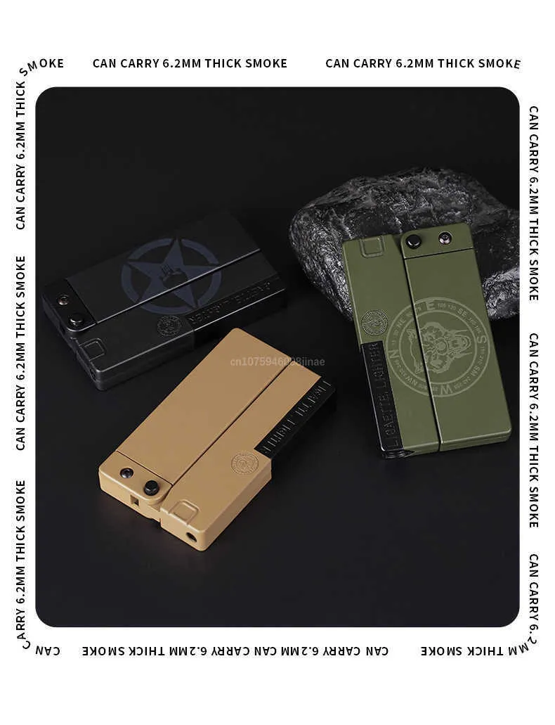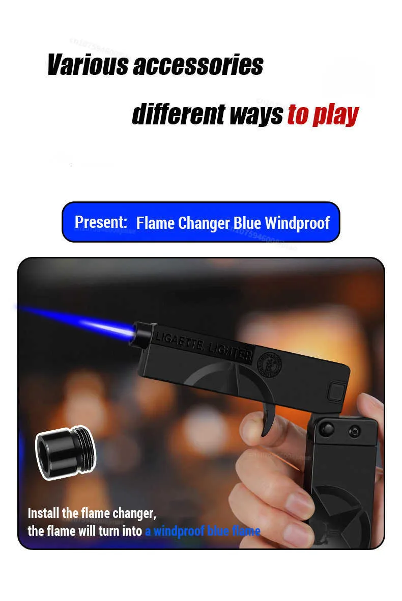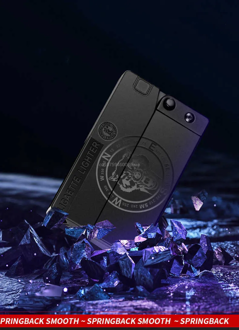 Folding lighter with spray effect and storage box, 2 metal silencers