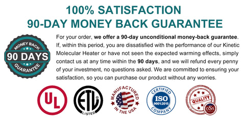 Thanks to the portability of the Portable Kinetic Molecular Heater, it can extend from your car to your home, providing all-around warmth within 600 square feet of your home in under 5 minutes. You can rely on it to ensure your home has a warm temperature in winter, saving you significant annual electricity costs. It also helps you avoid costly repair expenses caused by roof damage, house collapse, interior leaks, and other issues due to roof snow accumulation.