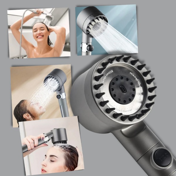 🛁 A stylish accessory that upgrades the aesthetics of your bathroom. 💧 No strong water pressure – protect your skin from dryness and damage. 😍 Filtered water makes your hair smoother and healthier. 🌿 Scalp massage for daily care. 💦 Water-saving design that keeps the pressure high without wasting a single drop.