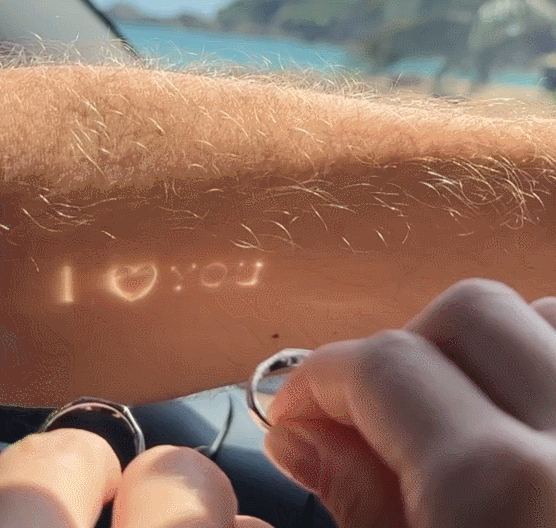 As light dances across the surface, these rings unveil a hidden message of love, completing the heartfelt phrase when worn as a pair.