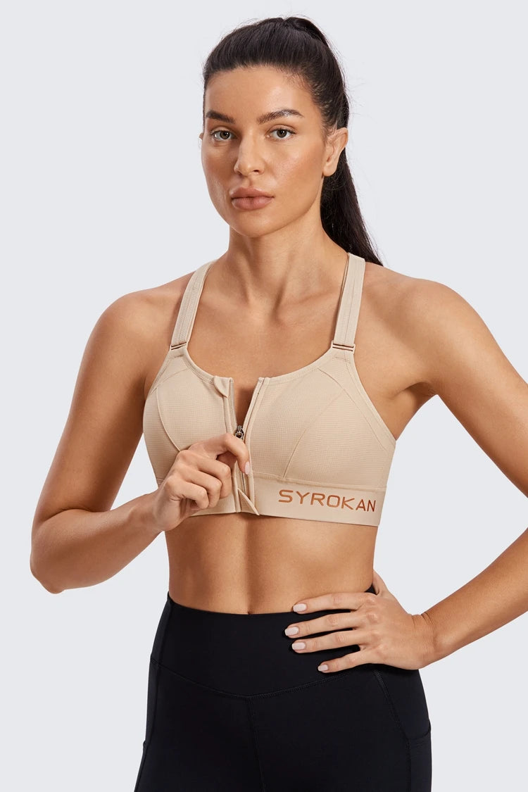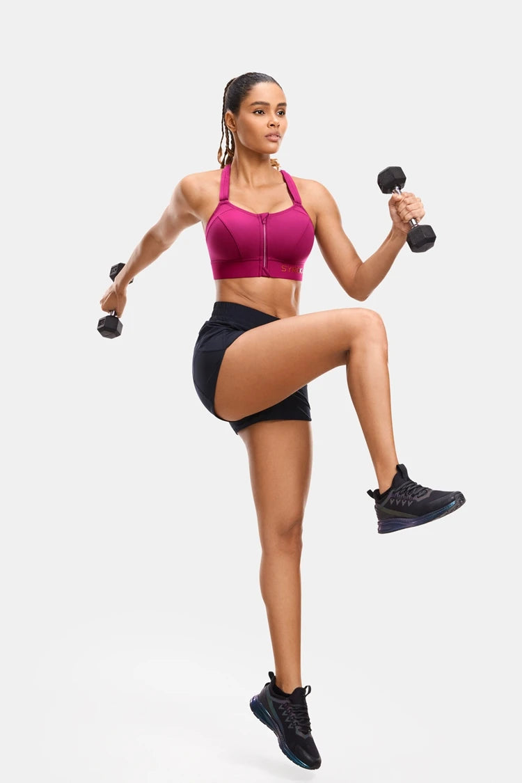Women's High Impact Zip Front Adjustable Straps Strappy Back Wire-free Padded Workout Sports Bra(buy one get one free)